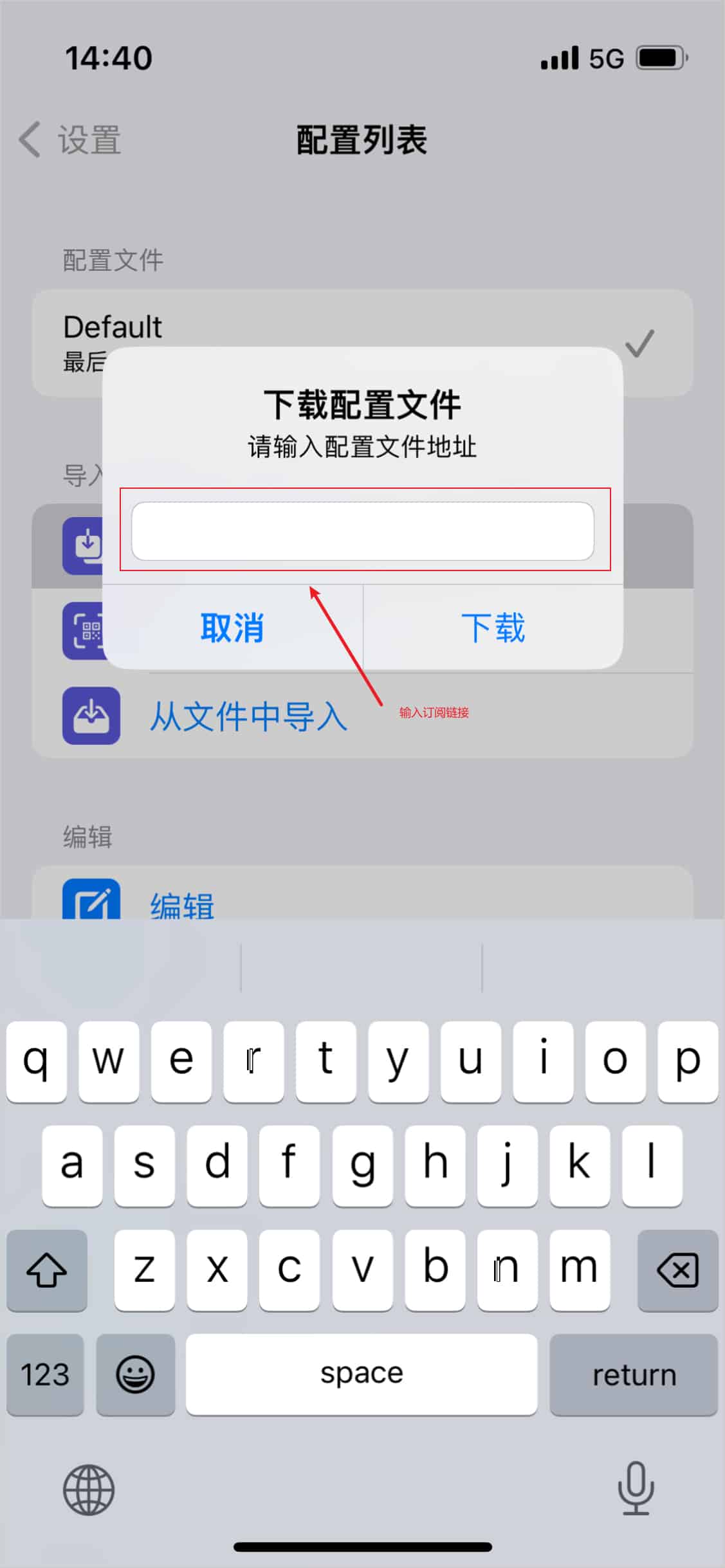 接着直接在弹出的窗口中输入节点订阅链接即可,如下图所示: